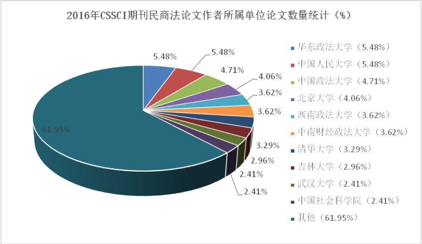 2016年CSSCI期刊民商事法律科学论文数据统计分析