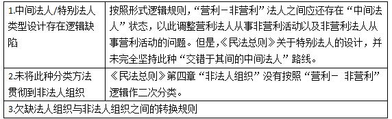 综上,“营利-非营利”法人类型区分模式,表面上看来偏离了此前大陆法系国家关于法人分类的传统模式,也超越了《民法通则》所设定的法人类型结构,似乎是一种凸显商法思维的全新设计,其实仍在中国关于法人拟制的传统逻辑中行动。此种分类标准考量到了我国现行立法关于法人的区分管理现状,凸显了中国社会的市场化转型需求,亦有比较法上的支持依据,是一种较“社团- 财团”二分法模式更为科学务实的法人区分模式。所以,“营利-非营利”法人的分类是有其合理性的。