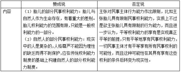 我国民法学界对于民事主体部分民事权利能力理论形成了赞成说和否定说的争论。