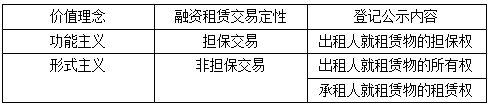 综上,融资租赁登记公示实有必要,但首先应当明确其对象究竟是出租人就租赁物的担保权、所有权,还是承租人就租赁物的租赁权。在我国民法的既有体系安排之下,登记公示租赁物的担保权虽然置重与融资租赁交易的实质,但我国目前形式主义立法模式不接受此种立法例。换言之,制度走向应为登记公示租赁物的所有权和租赁权。