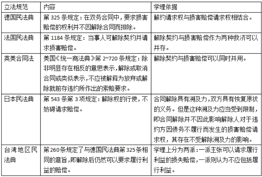 在解除契约与损害赔偿的关系问题上,我国学理与立法一贯坚持同时并用的观点。根据《民法通则》第115条规定:“合同的变更或解除,不影响当事人要求赔偿损失的权利。”我国现行《合同法》继受了这一原则,根据该法第97条及第98条的规定,合同终止不影响当事人请求损害赔偿的权利。