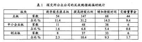 据深交所公司治理研究中心的统计,截止2012年,在深圳上市的公司对在收购要约之前采取反收购措施已经表现出较为明显的偏好: