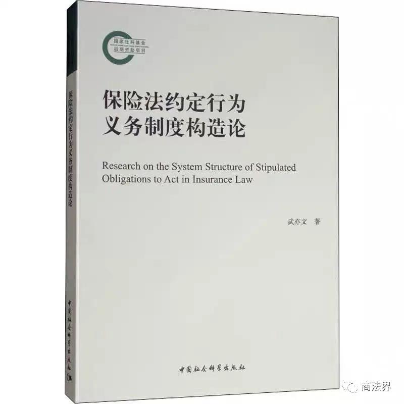 武亦文:保险法约定行为义务制度构造论,中国社会科学出版社,2019年9月