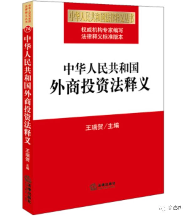 王瑞贺主编:《外商投资法释义》,法律出版社,2019年12月