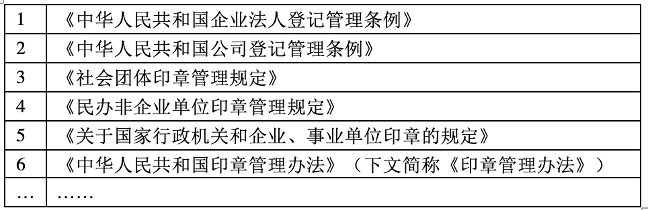 如何在司法实务中判断印章伪造,确为难事。究其根由,在于我国的印章管理体系较为复杂甚至混乱(见下表),规范众多却不能完全管控住印章的刻制与使用。