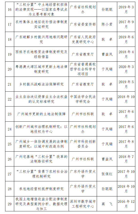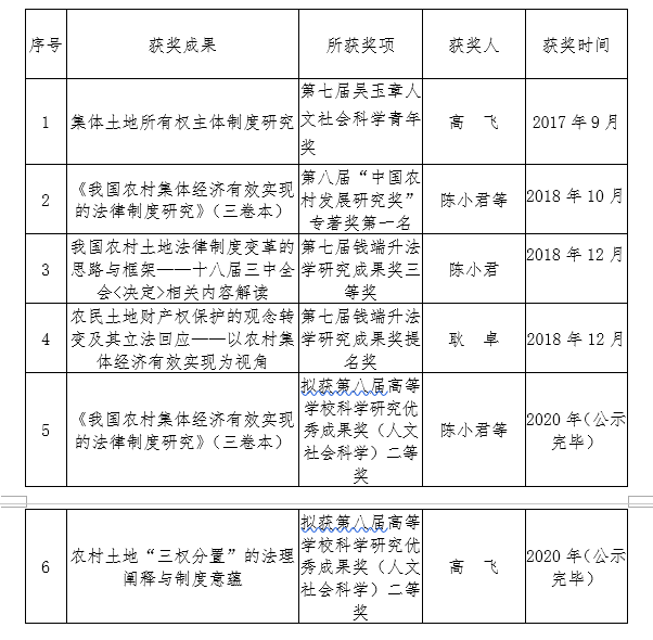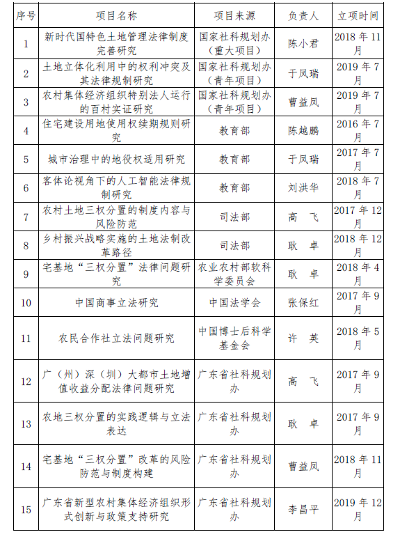 1.加强组织建设。建设形成“一院四中心”(“一院”即土地法制研究院;下设“四中心”,即乡村振兴与农村土地法制研究中心、大湾区建设与城市土地法制研究中心、基层治理与集体经济组织研究中心、不动产比较与实证研究中心)研究架构,实现重点研究方向科研机构全覆盖,充分发挥科研人才集群效应。