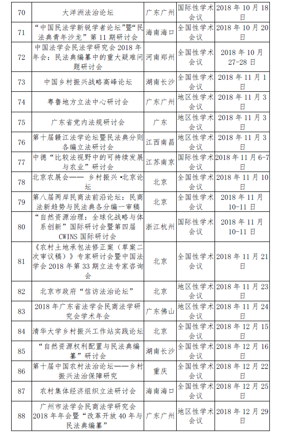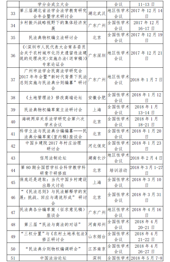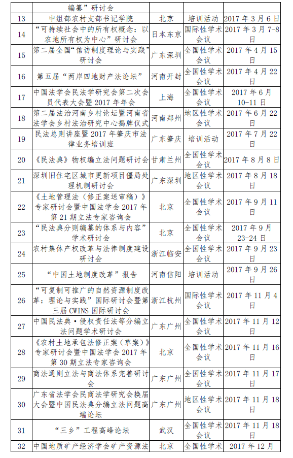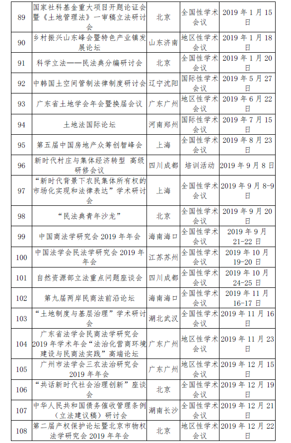 1.境内学术交流。参加各类重要学术会议近120场;应邀做学术报告80余场;主办或承办学术活动40余场,极大地提升广外法学学科的学术声望和影响力。其中,发起创立(主办)的“一联盟三论坛”(“中国土地法制与乡村振兴战略会议联盟”“云山青年法治圆桌论坛”“全国土地法制博士生学术论坛”“土地法制前沿论坛”),正在成为学界具较大影响力的土地法治、三农法制与乡村振兴战略研究领域学术交流平台,并与业内同仁们共同展示了土地法治研究领域的学术生命力与感召力。
