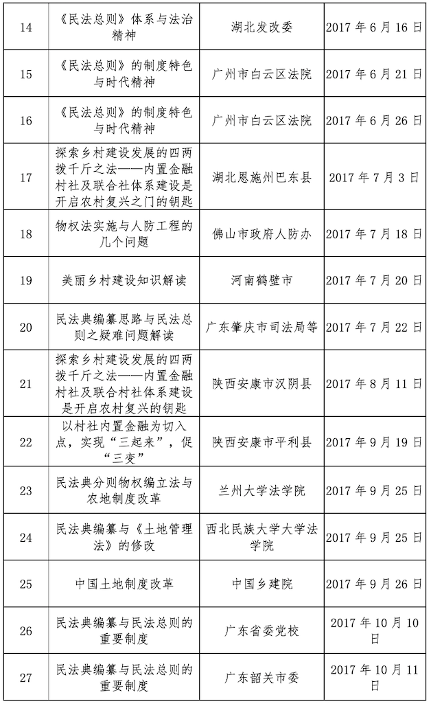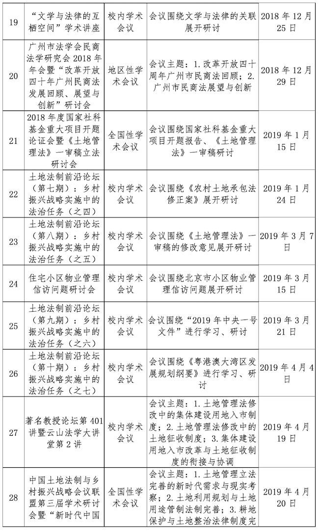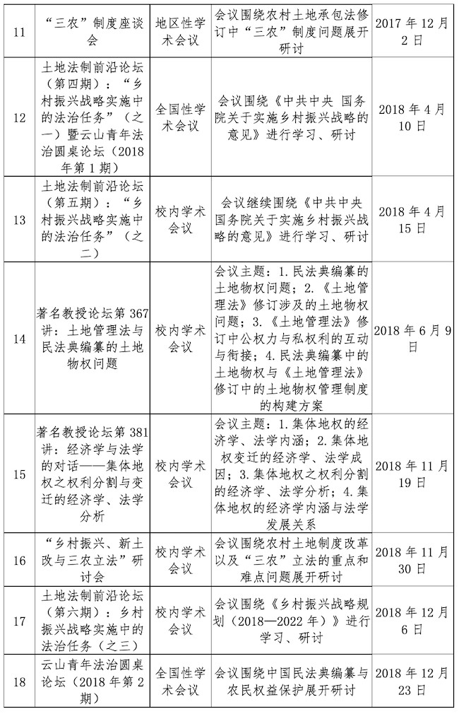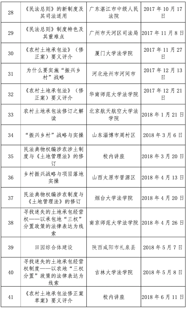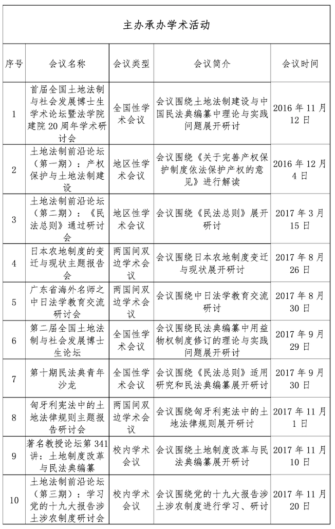 研究院研究人员倡导良好向上的学风,创造性的连年为法学硕士生、博士生(法学方向)开设“经典与前沿文献研读”“文献综述与论文写作”“比较法学”“社会科学研究方法”“民事立法与民法典编纂”“土地法律制度立法前沿问题”等课程与学术讲座,深受好评。