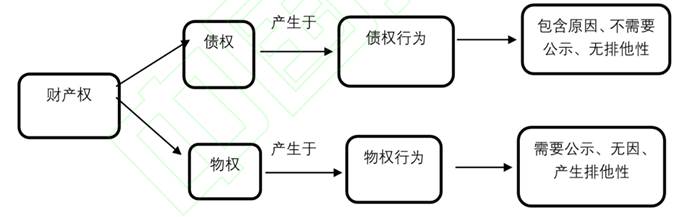 在分离和无因对物权编的支撑下,《民法典》财产权的基本逻辑如下图所示: