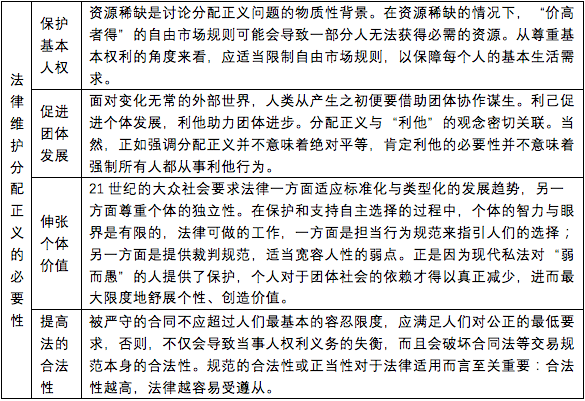 合同自由不是一种抽象宣示,而是一系列具体的制度,不仅包括欺诈、胁迫(涉及意思表示自由)、错误(涉及意思表示真实)等与缔约过程有关的规则,而且包括情事变更、合同解除、违约责任等与缔约结果有关的规则。合同自由在合同法内部受到实质公正乃至分配正义的制约,还受到包括侵权法、物权法中相关规则的限制,同时也受制于私法以外的管制规范。法律维护和促进分配正义是必要的。和税收等其他公法规范一样,合同法也可以被用以维护和促进分配正义。相比税收、社会保障制度或其他分配方式,以私法进行分配的效率并不更低,对个人自由的干涉也并不更高。而分配正义的思想则渗透于民法的各个分支。除了合同法外,物权法乃至侵权法都彰显分配正义的考量。