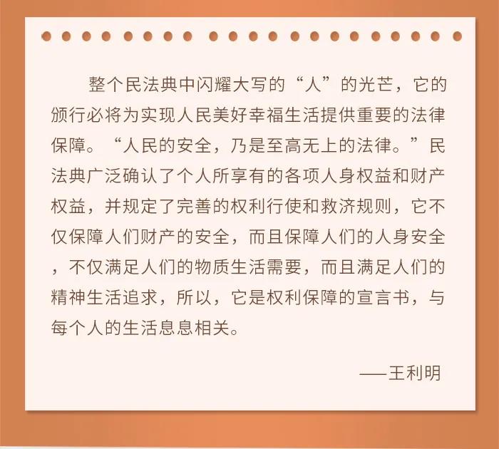 【作者简介】王利明,中国人民大学法学院一级教授,长江学者,博士生导师。教育部“长江学者”特聘教授,“新世纪百千万人才工程”国家级人选,享受国务院政府特殊津贴;兼任国务院学位委员会法学学科评议组成员兼召集人、教育部高等学校法学学科教学指导委员会副主任委员等,参与了改革开放以来诸多民商事法律及民法典的起草工作。