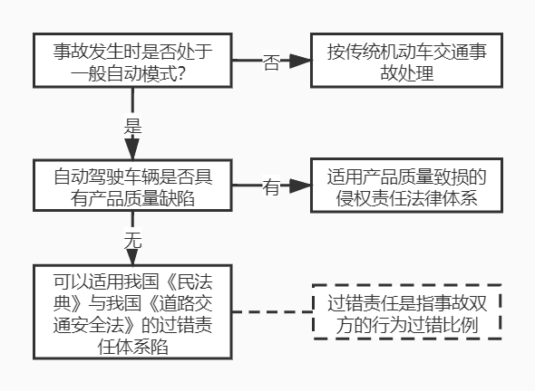 在不考虑保险的情况下,一般自动驾驶交通事故责任法律适用的步骤如下。