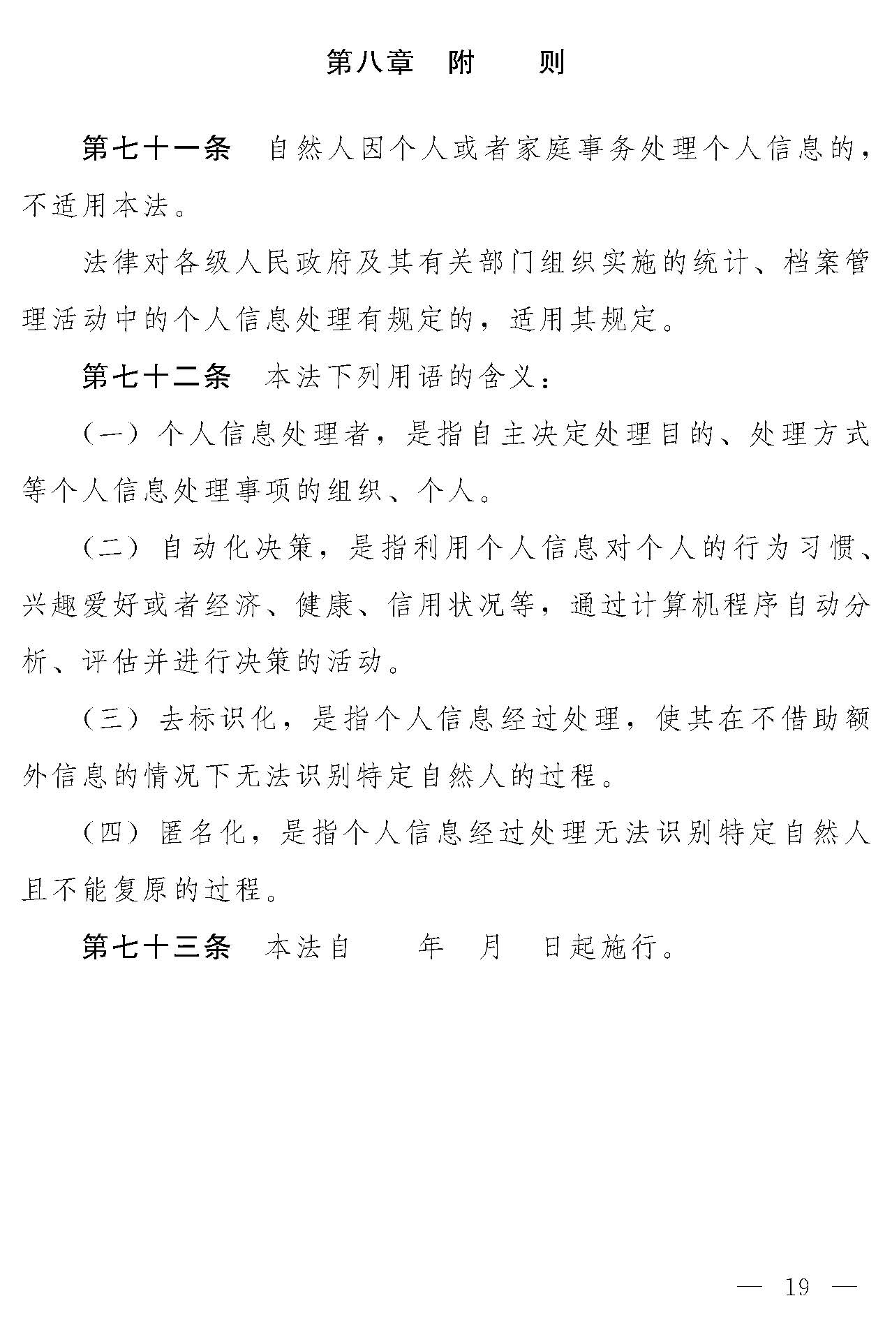 第十三届全国人大常委会第二十八次会议对《中华人民共和国个人信息保护法(草案二次审议稿)》进行了审议。现将《中华人民共和国个人信息保护法(草案二次审议稿)》在中国人大网公布,社会公众可以直接登录中国人大网(www.npc.gov.cn)提出意见,也可以将意见寄送全国人大常委会法制工作委员会(北京市西城区前门西大街1号,邮编:100805。信封上请注明个人信息保护法草案二次审议稿征求意见)。征求意见截止日期:2021年5月28日。