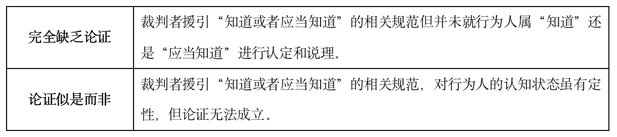 对于“应当知道”内涵认定和说理常处于混沌不清的状态,具体包括: