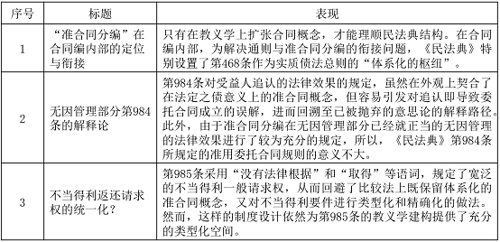从罗马法中的非体系化概念,到近代自然法以来的意思论解读和体系化尝试,再到潘德克顿学派的向法定之债回归,准合同概念的内涵始终处于变动之中,这对不同的实证法体系有着强大的塑造作用。我国 《民法典》放弃了对债法总则的设计,这在某种程度上表明了我国 《民法典》放弃严格的体系化而直面实践需求的开放态度:一方面,《民法典》没有规定法国式的准合同一般条款;另一方面,《民法典》对准合同制度内部具体规则的设计,如对真正的无因管理、正当的无因管理以及不当得利一般情形的规定,又存在着德国式的概念法学倾向。