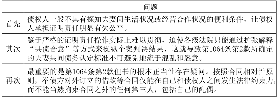 根据司法实务情形,《民法典》第1064条第2款存在以下问题: