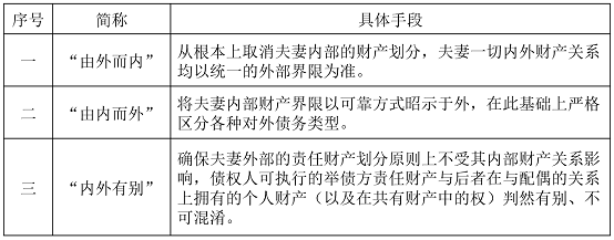 (二)夫妻对外责任财产的区隔:三种路径的选择