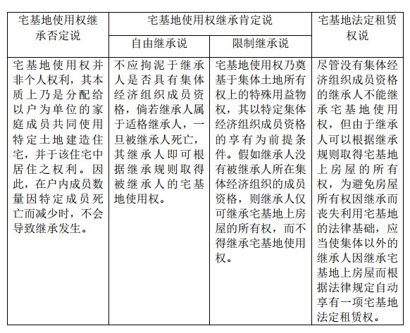 宅基地法定租赁权说也存在不完备之处。根据宅基地法定租赁权说,继承人不可继承宅基地使用权,只能取得一项由法律直接规定而产生的法定租赁权。倘若承认该学说,则宅基地使用权不仅在继承方面将会被限制于集体经济组织内部成员之间,而且在出让、抵押、出资等其他领域亦会陷入对外处分不能之境地。