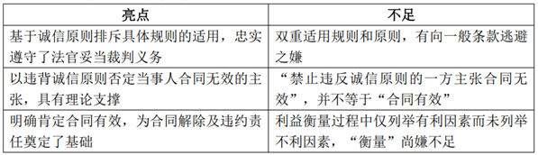 若要解决从驳回无效主张到合同有效之间的逻辑跳跃,就要变动规则,这需要一个修正规则或限制规则适用范围的方法论工具;若要解决权衡不足的问题,就要有说服力地展示诚信原则在本案权衡中胜出的过程。下文依次解决这两个问题。