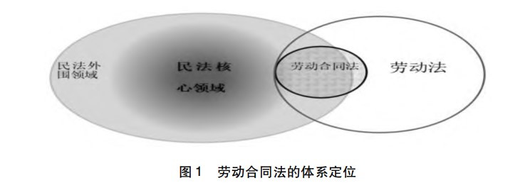 “社会法—劳动法—劳动合同法”一线,所遵循的标准是后者依次包含于前者。而“民法(合同法)—劳动合同法”一线,则按照“一般—特殊”标准相连,后者并无法被前者完全包含,如图1所示。公法规制的渗入与两种元素的交融,使双重体系归列成为可能:于民法视角上,它以适度之契约自治与几乎完整的契约结构,形成与《民法典》之间的“特殊—一般”关联。在社会法视角上,它则以倾斜保护理念,与劳动法间形成完美的包含关系。