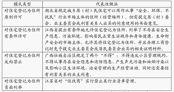 表1 各地突破“住改商”的不同改革模式