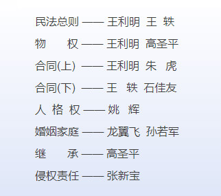 王利明教授:第一章,第十一章,第十二章至第十七章,第三十章至第三十三章;