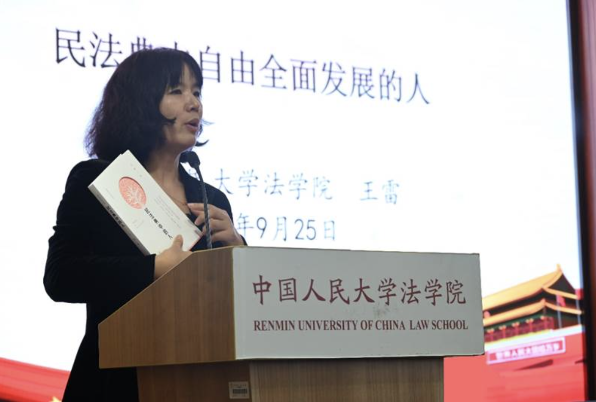 接着,王雷教授以“民法典中自由全面发展的人”为题发表了主旨演讲。王雷教授首先介绍了本书的写作缘由、基本内容及写作目标。他强调,人在法中,法不远人,法由人立,法为人立。《民法典》的编纂和实施都坚持以人民为中心,“人”在法典中最具体、形象、多样和生动。《民法典中的人》是一本法治文化图书,是对自己民法典普法宣传工作的阶段性总结,是广义法律实践观的研究尝试,是对《私法中的人》未竟话题的续写。本书从案例分析到理论提炼,讲解不同人的民法故事,展现二十一世纪民法典中自由全面发展的人的形象,努力“让民法典走到群众身边、走进群众心里”。随后,王雷教授引用了多个生动的实践案例,阐述了民法不限于财产法视角,不能陷入财产法中心主义或者个体主义方法论的“片面深刻”。他指出,理性经济人是近代民法尤其是财产法的经典人像。人身法中的人是伦理人,而非理性经济人。近代民法的理性经济人和现代民法的社会特殊群体尚无法完整描绘21世纪民法中“人”的形象。从近代民法、现代民法向21世纪民法的发展,实际上是对人不断认识和再发现的过程,是从理性经济人、社会特殊群体向自由全面发展的人的变迁过程。最后,王雷教授总结道,《民法典中的人》阐释民法以人为本的人法品格,展示21世纪我国《民法典》中自由全面发展的人的形象,自由全面发展的人统合了理性经济人、社会特殊群体、伦理人、情谊人、团体人以及生态人。