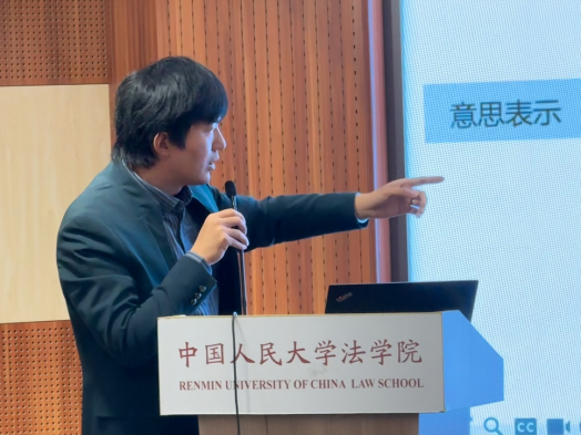 2024年10月20日上午,第538期民商法前沿论坛在中国人民大学明德法学楼602教室线下成功举行。华东政法大学法律学院教授杨代雄以“意思表示与法律行为的关系”为主题发表报告,北京大学法学院长聘副教授纪海龙、北京航空航天大学法学院副教授王琦、中国政法大学民商经济法学院谢远扬老师围绕该主题发表与谈意见,中国人民大学法学院教授朱虎、中央财经大学法学院副教授徐建刚出席论坛并参与讨论,中国人民大学法学院博士生章豪主持论坛。