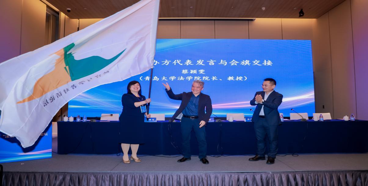 最后,下届承办方代表、青岛大学法学院院长蔡颖雯教授发言,表示将做好下一届论坛的准备工作,为法学界和司法实务界提供了一个高水平的交流平台,并进行了会旗交接仪式。