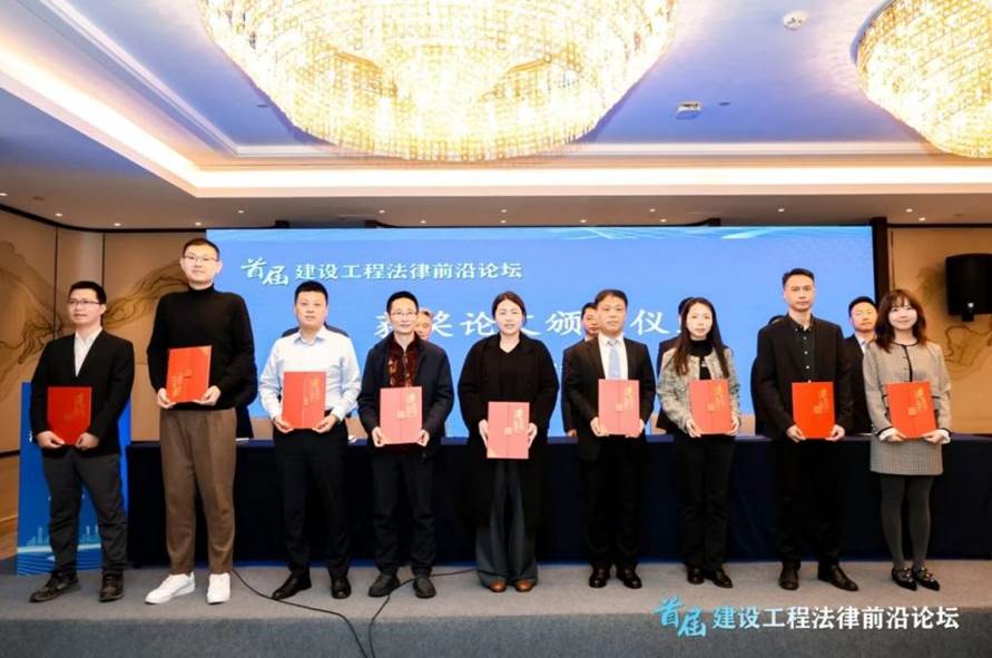 开幕式后,本论坛举行优秀获奖论文颁奖仪式。本次论坛共收到90余篇文章,经组委会组织评选,共评出10篇优秀论文。获奖作者包括贵州省高级人民法院法官黄千柏、江苏省高级人民法院法官姚盛中、中建八局浙江建设有限公司总法律顾问赵振华、浙江振邦(杭州)律所事务所律师方雯雯、河南省洛阳市伊川县人民法院法官司磊磊、浙江省人民检察院检察官助理童扬虹、河南万基律所事务所律师张世峰、北京市嘉源律所事务所上海分所律师曹菁菁、浙江省金华市金东区人民法院法官王画、北京市海淀区人民法院法官助理魏择旭。