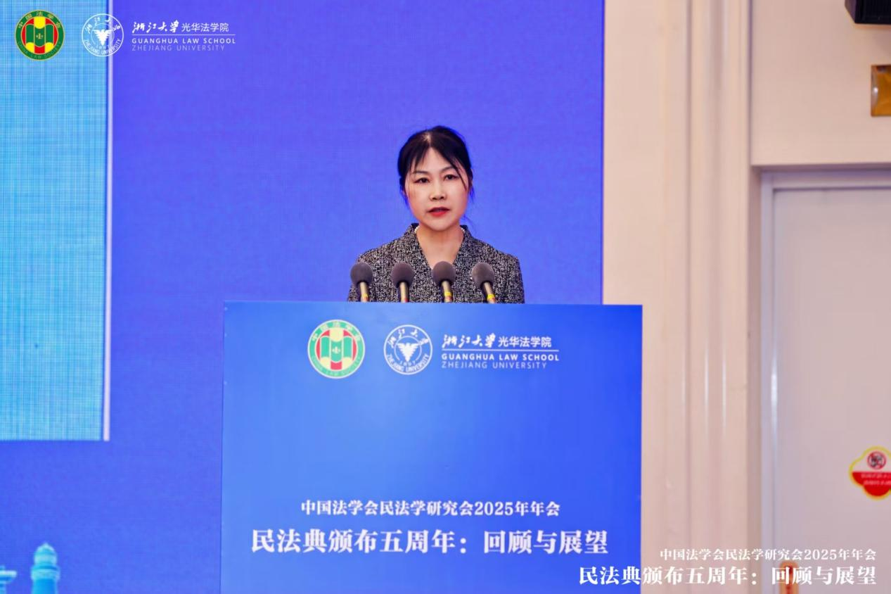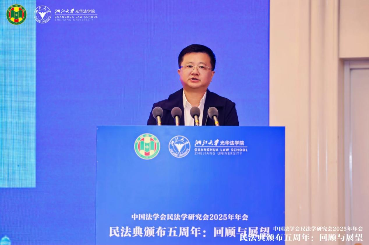 浙江省法学会党组成员、专职副会长许洁在致辞中表示,浙江是习近平法治思想的重要萌发地和法治中国建设的重要实践地,始终坚持以法治护航高质量发展,形成了具有鲜明特色的治理样本。他指出,本次年会以“民法典颁布五周年:回顾与展望”为主题,对完善实施机制、推动民法理论体系创新具有重要意义。浙江将以此为契机,深化民法学研究,强化理论成果转化,积极应对数字经济和人工智能带来的新兴民法问题,为构建中国特色民法体系和推进法治中国建设贡献力量。
