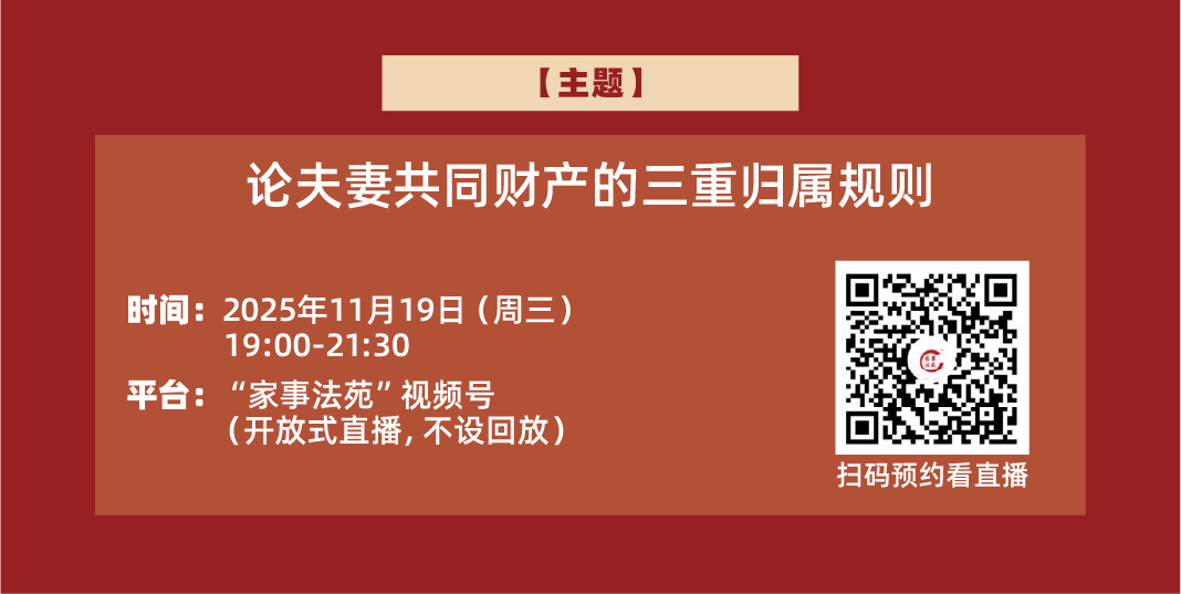 为进一步加强婚姻家事法领域理论界与实务界的交流,中国人民大学法学院婚姻家庭法研究所、中国人民大学民商事法律科学研究中心自2020年5月起特创办“家事法讲坛”(线上)系列研讨活动,邀请法律职业共同体各界嘉宾从多学科、多视角为民法典婚姻家庭编、继承编的正确实施、立法完善以及家事审判改革及家事诉讼程序立法及完善建言献策。