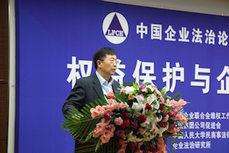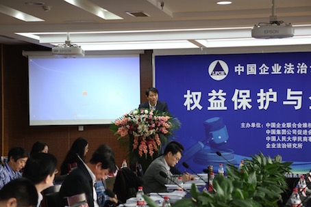 10月22日,中国企业法治论坛(2016)在中国人民大学法学院成功举办。本届论坛的主题是“权益保护与企业法治”,旨在通过对权益保护与企业法治的理论与实践问题进行探讨,从法律政策、市场机制、司法体制等方面,共同思考和研究企业发展、权益保护所面临的突出问题,为推动企业供给侧结构性改革、经济转型升级、改革发展建言献策。论坛发布了由中国集团公司促进会和国家工商总局综合司合作研究的《企业公平竞争存在的问题及其政策建议》研究报告。在国际经济环境日趋复杂、我国经济下行压力仍然较大的背景下,一些企业经营困难加剧、合法权益得不到保护,这在一定程度上导致企业经营成本上升、债权债务风险加大、资产权益受损,企业发展由于合法权益得不到保护面临严重问题。本届论坛由中国人民大学民商事法律科学研究中心、企业法治研究所、中国企业联合会维权工作委员会、中国集团公司促进会共同举办,收集涉及权益保护与企业法治相关论文37篇,全国人大法工委、商务部、工信部、司法部、国资委、国务院发展研究中心、中国社会科学院法学研究所、中国企业联合会、中国集团公司促进会、中国国际经济贸易仲裁委员会、北京仲裁委员会等有关领导、52家企业总法律顾问和法制机构负责人、16所大学和研究机构的法学界专家、学者和15家律师事务所律师、会计事务所会计师、外资企业法律总监等120多位嘉宾参加了本届论坛。中国人民大学民商事法律科学研究中心企业法治研究所所长王耀国研究员、中国电建集团总法律顾问王书宝、中国节能集团副总经理兼总法律顾问张超、中国社科院法学所法治战略研究部秘书长陈根法教授分别主持了论坛。