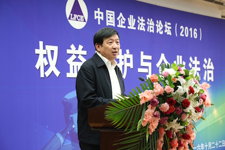 司法部法制宣传司副司长刘汉银到会发言,他指出:本次论坛的主题是权益保护与企业法治,将通过探讨企业权益保护的法律政策、体制机制、运作模式、法律风险等,为促进企业的改革发展出谋划策。本次论坛的主题报告及各位专家发表的论文,都从不同的角度对企业的权益保护和企业法治的重大问题作出了深刻的阐释,具有很强的指导性和可操作性。我相信这次论坛对促进企业法治建设水平的提高必将起到重要的推动作用。全民普法开展以来,加强企业法治宣传始终是其重要任务之一,促进企业的权益保护和企业的法治建设也始终是全民普法的重要任务。今年三月,党中央国务院转发的七五普法规划再次明确提出突出加强企业经营管理人员法治宣传教育。引导他们树立诚信守法,爱国敬业意识,提高依法经营依法管理的能力,为进一步加强企业法治宣传教育提供基本的遵循,深化企业法治宣传教育,提高企业依法经营依法管理依法和依法维权的能力是企业权益保护和企业法治的前提。借此机会我就加强企业的法治宣传教育提几点意见以供参考。一是要围绕企业中心工作开展法治宣传教育,要围绕企业的生产经营,围绕企业的改革发展,围绕经济发展新常态和供给侧改革给企业带来的一系列新挑战,围绕社会主义市场经济条件下企业所面临的一系列新问题有针对性得开展法治宣传教育。二要抓好企业经营管理人员的学法用法,企业经营管理人员始终是全民普法工作的重点对象,加强企业经营管理人员的法治宣传教育是企业权益保护和企业法治的关键。三是要开展依法治企活动,要建立健全企业依法治理的工作制度,完善和规范企业运行机制,健全依法治企的考评体系。四是要积极推进法治宣传教育工作创新,要把创新贯彻于企业法治宣传教育的全过程。