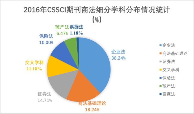 中国人民大学民商事法律科学研究中心对2016年民商事法律科学论文数据统计,是以中国社会科学研究中心2015—2016年公布CSSCI来源期刊包括:法学(21种)、综合性社科期刊(50种)、高校综合性学报(70种),共计141种期刊为范畴。2016年上述CSSCI来源期刊中共有115种期刊发表了民商事法律科学论文,其中法学(21种)CSSCI来源期刊发表民商事法律科学论文数量536篇,超过总量的一半;综合期刊发表200篇,接近总数五分之一。