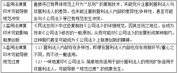 就立法技术而言,《民法总则》关于法人部分的条文设计,存在明显的“复印公司法”之问题。此种法人规范构造逻辑,可能不当地扩张了非营利法人的责任,也未能针对营利法人和非营利法人进行“差异性构造”。