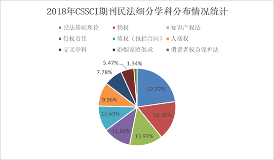 中国人民大学民商事法律科学研究中心对2018年民商事法律科学论文数据统计,是以中国社会科学研究中心2017—2018年公布CSSCI来源期刊包括:法学(23种)、综合性社科期刊(47种)、高校综合性学报(70种),共计140种期刊为范畴。2018年CSSCI来源期刊中共有117种期刊发表了民商事法律科学论文,其中法学(21种)CSSCI来源期刊发表民商事法律科学论文数量549篇,超过总量的一半;综合期刊发表209篇,高校学报发表208篇,均超过总数五分之一。