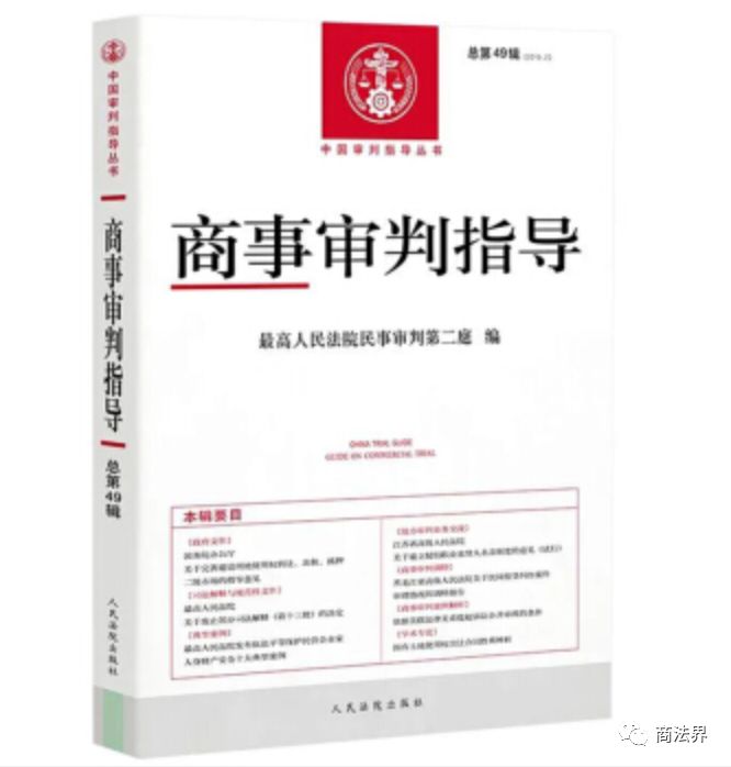 最高人民法院民事审判第二庭编:《商事审判指导(总第49辑)》,人民法院出版社,2019年12月
