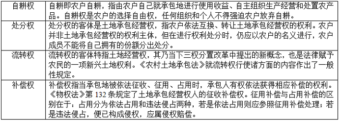 (二)承包人自耕权、处分权、流转权与补偿权