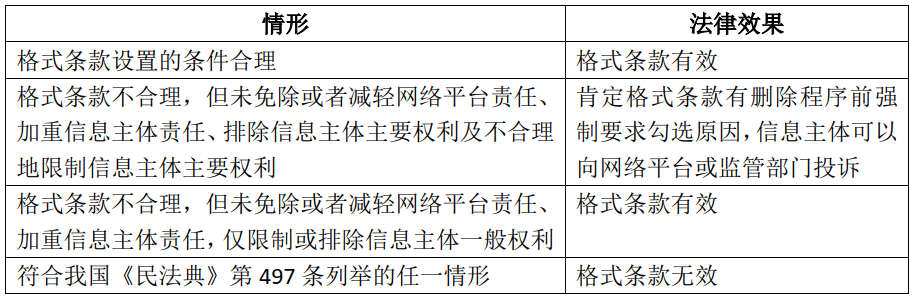 (二)个人信息处理格式条款效力认定规则之三:违反强制性规定无效及行使条件分类认定标准