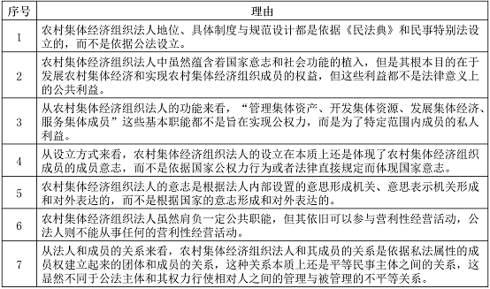 学界对于农村集体经济组织法人究竟属于公法人还是私法人存在争议。但无论从形式判断标准还是实质判断标准,认定农村集体经济组织法人属于私法人均更合理。理由见下表。