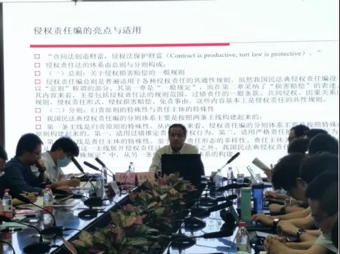 2021年9月17日晚,第513期民商法前沿论坛暨第7期盈科论坛在中国人民大学明德法学楼601室举行。中国人民大学法学院王利明教授以“民法典侵权责任编的亮点与适用”为主题发表报告,北京航空航天大学法学院周友军教授、北京理工大学法学院孟强教授及中国人民大学法学院朱虎教授出席论坛并参与讨论。