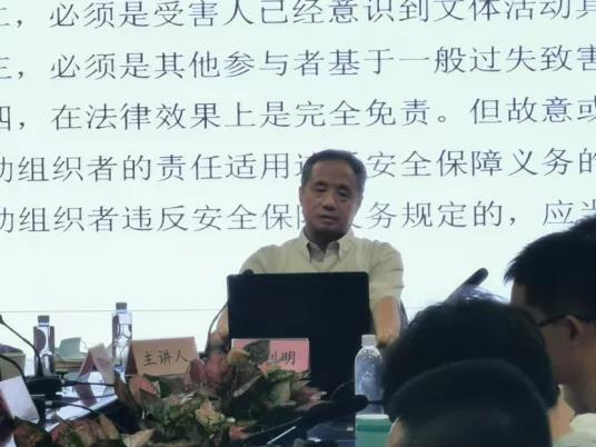 随之,王利明教授着重讨论了《民法典》第1176条自甘冒险制度的适用范围。王利明教授认为侵权责任编的自甘冒险制度不同于比较法上一方面将自甘冒险规则适用于各种活动,另一方面还采取比较自甘冒险者与行为人之间的过失程度来确定责任的做法;《民法典》第1176将自甘冒险的适用场景严格限定为文体活动,并且将自甘冒险中的损害来源限定于活动的内在风险、其他参与者的原因。其构成要件包括受害人自愿参与文体活动;受害人已经意识到文体活动具有一定风险但仍然参与;其他参与者基于一般过失致害。法律效果则为侵权人完全免责,但故意或重大过失的除外。活动组织者的责任适用违反安全保障义务的规定,活动组织者违反安全保障义务规定的,应当承担相应的补充责任。