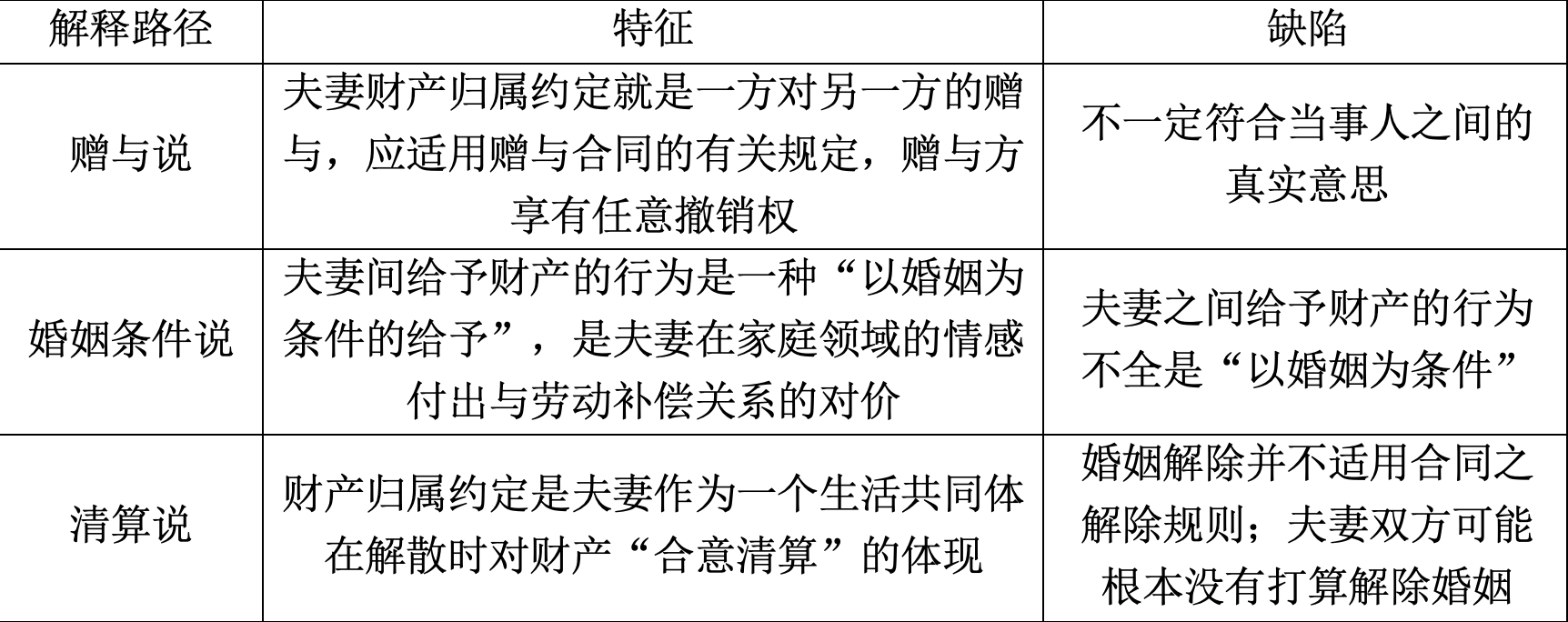 夫妻财产归属约定之意思表示究竟是什么含义?对此,存在“赠与说”“婚姻条件说”“清算说”等学说。