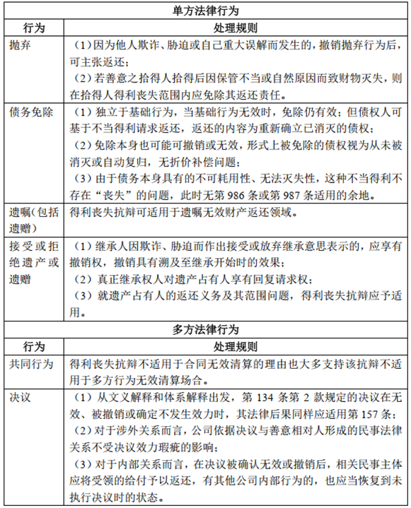 (四)单方或多方行为无效场合下的得利丧失抗辩