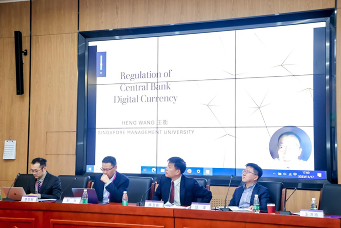 新加坡管理大学杨邦孝法学院教授Wang Heng 以“中央银行电子货币规制”为题发言。Wang Heng 从国际实践案例中考察了当前央行数字货币监管的相关规定。他认为,央行数字货币监管需要考虑数字化基础设施、知识产权和金融安全等诸多方面,而传统治理和缔约模式难以涵盖这些因素。如何建立起各国之间的数字货币交易及监管的机制,同时有效控制技术带来的风险,以及国际金融争端的解决,乃至于相关法规的法典化,都是今后亟需讨论的问题。