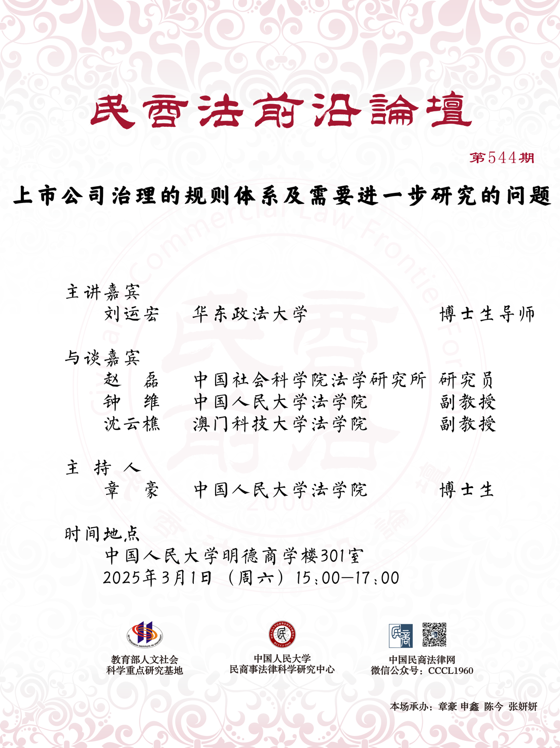 民商法前沿论坛是由王利明教授发起,中国人民大学民商事法律科学研究中心主办的品牌学术活动。论坛以“打造学术争鸣之地、前沿传播平台、学子见贤思齐之所”为宗旨,自2000年9月15日创办至今廿四载余,已成功举办各类学术讲座超过536场,曾邀请谢怀栻、江平、魏振瀛、大村敦志、森岛昭夫、冯·巴尔等境内外著名学者分享洞见;论坛现场听众累计超过15万人,论坛实录通过“中国民商法律网”及其微信公众号独家全文发布,累计阅读量已逾520万人次。在中国民商法学界同类学术活动中,论坛运营时长及学术影响力均名列前茅,已经成为国内民商法学界最具影响力的论坛之一。