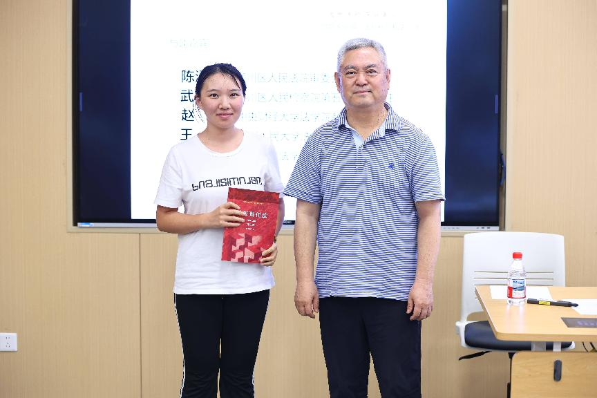 在场同学围绕杨立新教授的发言积极提问讨论,杨教授对同学们的问题进行了详细回应并赠书合影。本次会议在热烈的氛围和掌声中圆满结束,各位与会嘉宾亲切合影留念。