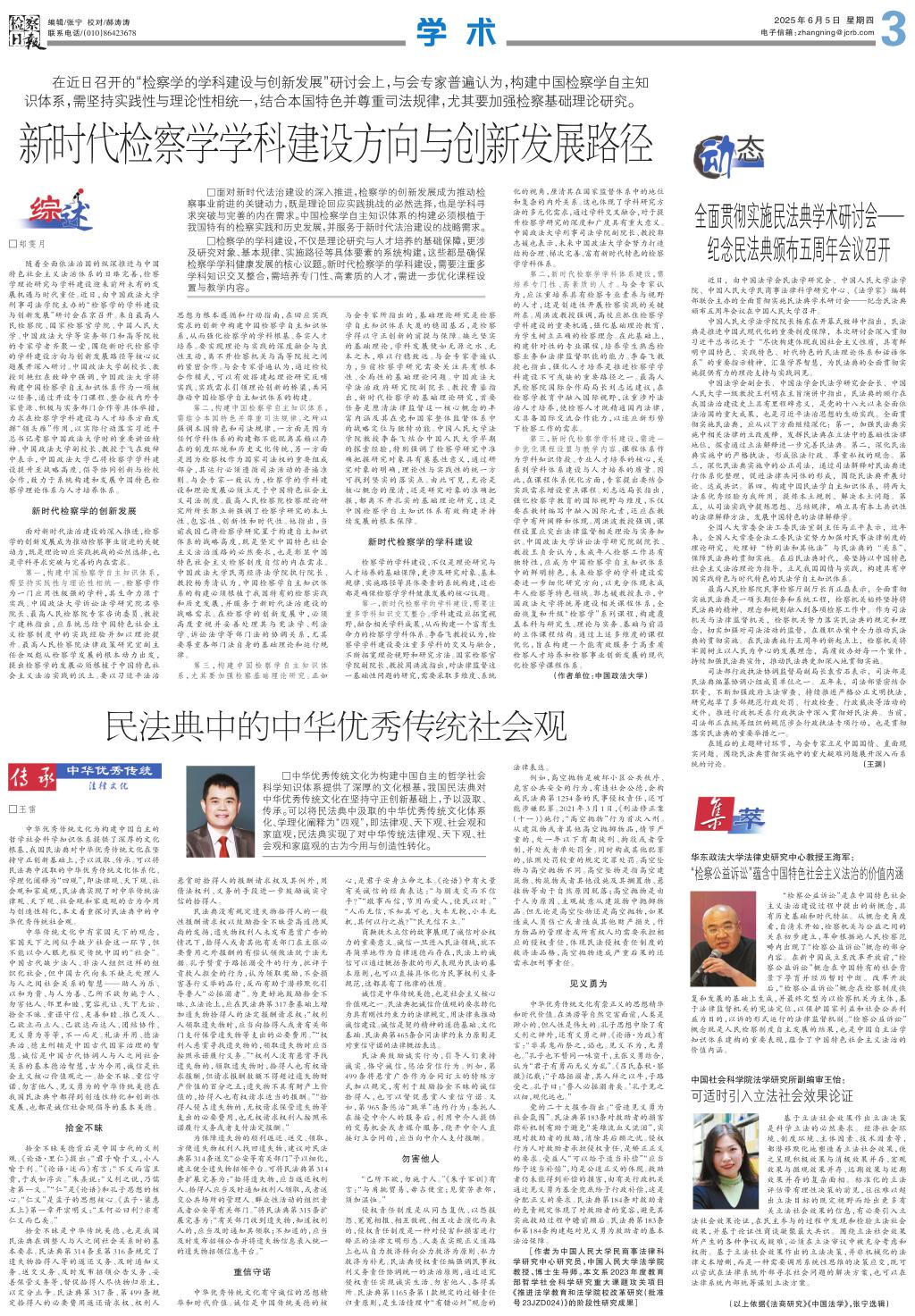 □中华优秀传统文化为构建中国自主的哲学社会科学知识体系提供了深厚的文化根基,我国民法典对中华优秀传统文化在坚持守正创新基础上,予以汲取、传承。可以将民法典中汲取的中华优秀传统文化体系化、学理化阐释为“四观”,即法律观、天下观、社会观和家庭观,民法典实现了对中华传统法律观、天下观、社会观和家庭观的古为今用与创造性转化。